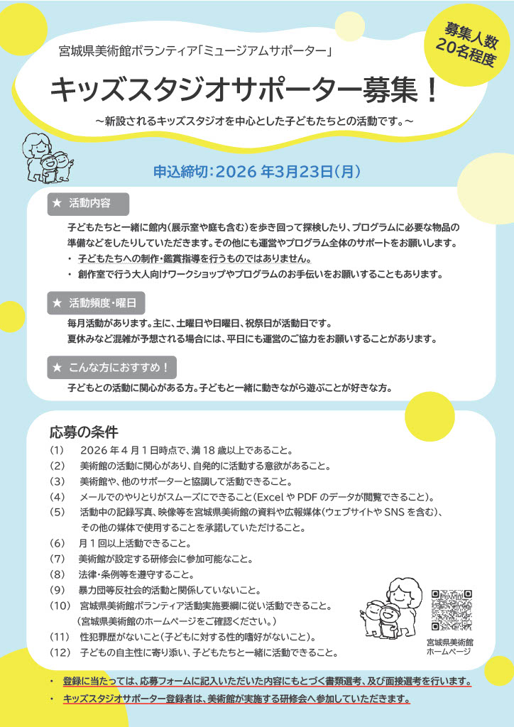 宮城県美術館ボランティア「キッズスタジオサポーター」チラシ(PDF:230KB)