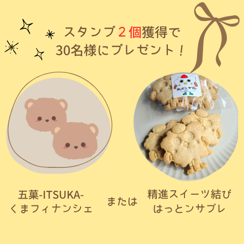 4.スタンプを2個集めた方には景品をプレゼント!(先着30名様)